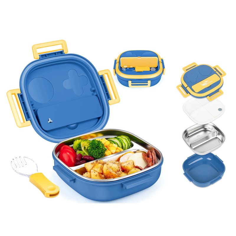 - Smart 2-Compartment Design: The 2-compartment stainless steel insert helps organize meals for balanced nutrition – perfect for separating main dishes, veggies, or fruits. The middle white partition cover prevents food mixing, while the included portable cutlery makes meals on-the-go a breeze!