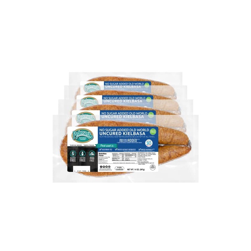 Pederson’s Farms, Old World Kielbasa Rope Pork Sausage, Whole30 (4 Pack, Use/Freeze) 14oz - No Sugar Added, Uncured , Keto Paleo Diet Friendly, No Nitrates Nitrites, Gluten Free, Made in the US