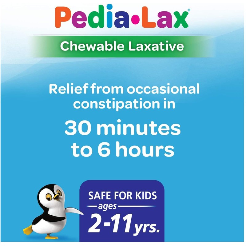 - Pedia-Lax Laxative Chewable Tablets gently provide occasional constipation relief for kids in 30 minutes to 6 hours
