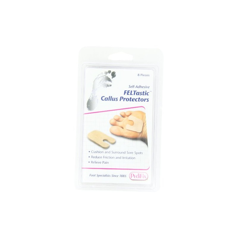 Felt Callus Protectors comfort and protect calluses, blisters, and other foot irritations. They absorb pressure and friction to ease pain and help prevent callus build-up. Self-adhesive backings allow positioning on skin or inside shoes. Scissor-trim for a custom fit.