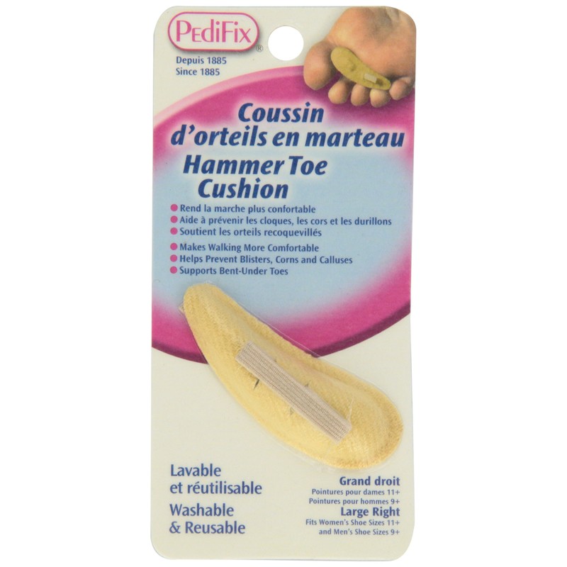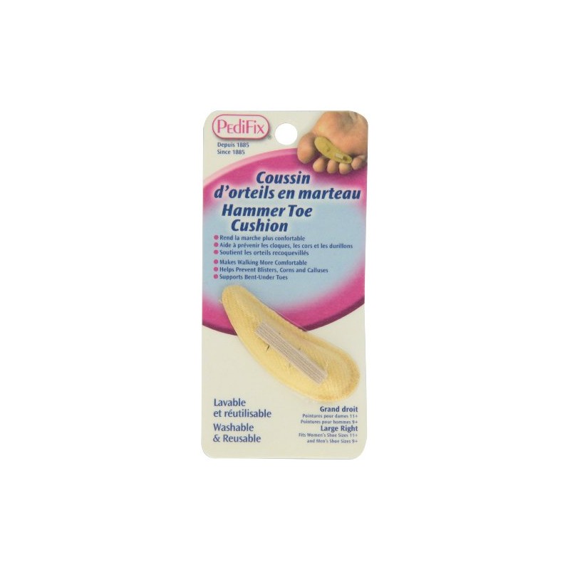 Hammer Toe Cushion eases pressure on toe tips as it comforts and supports bent-under toes. This soft, contoured pad also relieves forefoot pain while helping prevent blisters and corns. Adjustable toe loop holds cushion securely in place. Soft, durable top cover.