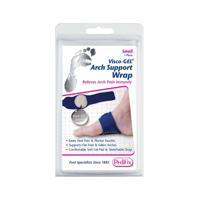 Stretchable fabric with hook-and-loop closure positions a soft silicone Gel cushion under the arch. Designed for wear under or over socks, or when barefoot. Thin profile design fits comfortably in most footwear. Washable and reusable for months. Interchangeable to fit Left or Right foot.
