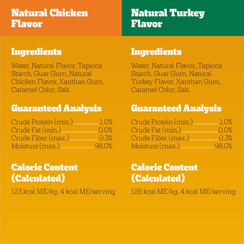 Pedigree Drizzlers Wet Dog Food Savory Sauce Pouches bring delicious flavor to your dog's favorite dog food kibble. Packed in a unique dual-serving split pouch, Pedigree Drizzlers Wet Dog Food Savory Sauce Pouches let you pour on the flavor now and later. To add flavor to mealtime, split the pouches apart, tear one open, and pour it on your dog's dry dog food kibble. The savory sauce coats dry dog food kibble so it stays crunchy while adding flavor and only 4 calories per serving. Pedigree Drizzlers Savory Sauce Multipack comes with 4 flavors: Beef, Chicken, Turkey, and Lamb Flavors. They contain only 8 ingredients and are formulated without artificial flavors, high fructose corn syrup, added sugars, and artificial preservatives, although trace amounts may be present due to potential cross-contact during manufacturing. Pour on the flavor and excitement at mealtime with Pedigree Drizzlers Wet Dog Food Savory Sauce.
