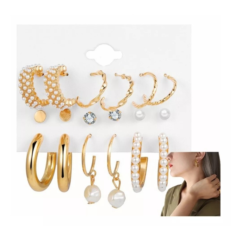 Un set de 9 aretes para combinar a la perfección, o usa un arete todos los días de la semana. Cada juego viene en diferentes tamaños y estilos para complementar perfectamente tu atuendo.