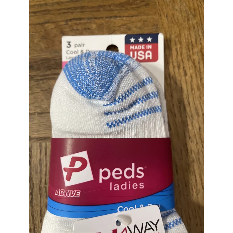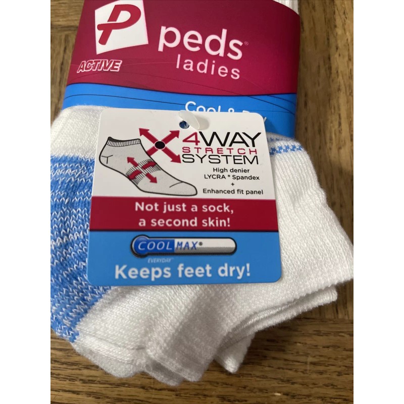 Peds Womens Socks 3 Pairs W 4 Way Stretch System & Cool Max(Keeps Feet Dry)-NEW