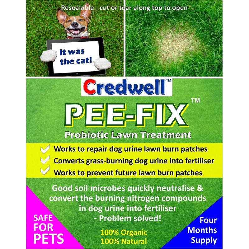 - ✅ DOG URINE OVERLOADS YOUR LAWN WITH NITROGEN COMPOUNDS INCLUDING AMMONIA, and salts which burn the grass. PEE-FIX contains natural microbes (lawn probiotics) and specific organic compost materials which work together to quickly convert these burning compounds into non-burning forms which grass loves, fixing the problem. Instead of burning the grass, dog wee is rapidly converted into non-burning fertiliser which feeds your grass