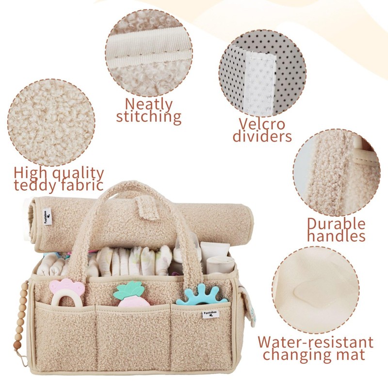 - Organiser: Keep everything in one place with our Portable Nappy Caddy & Changing Mat Set. Customise to suit your needs, includes an additional 8 side pockets providing extra storage space. Keep all your essentials neat & accessible