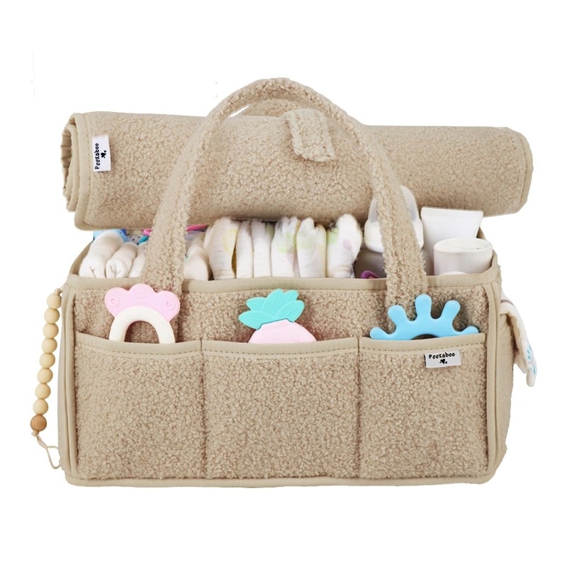 PEEKABOO Teddy Nappy Caddy Organiser & Changing Mat Set - Beige, Baby Shower Gifts, Newborn Essentials, New Baby Gifts (UK Company)