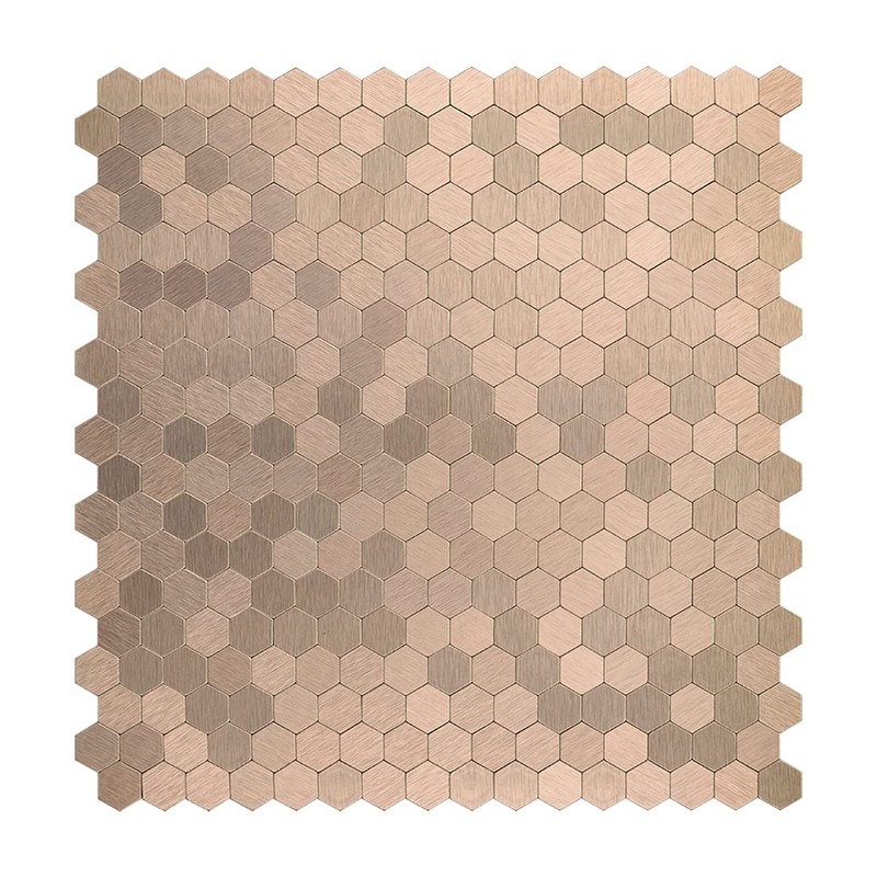 Peel and Stick Backsplash Mini Hexagon Tile, Light Copper Brushed Aluminum Metal Wall Tile for Kitchen (12 Sheets)