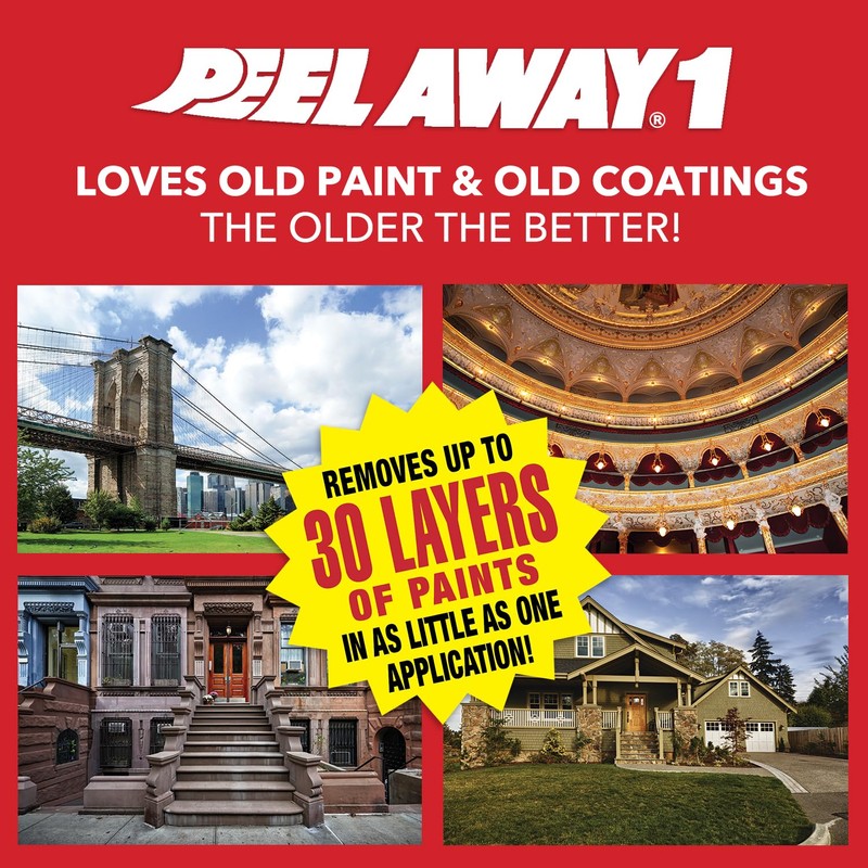 Peel Away 1 Paint Remover is a premier, industry-leading, heavy-duty paint removal product formulated to remove up to 30 layers of paints and coatings in as little as a single application. It is engineered to remove oil, alkyd, and lead-based paints and most other older coatings from virtually all types of interior and exterior surfaces. Best of all, it penetrates to the bottom layer and performs even when the top layers are latex, acrylic, or epoxy, as long as the bottom layer is an oil, alkyd or lead-based coating. Peel Away 1 is NOT engineered to work if the only coatings are latex, acrylic, or epoxy.Peel Away 1 Paint Remover is a complete paint removal system with everything you need to get started under the lid. Every container includes Peel Away 1 Paint Remover, Dumond Laminated Paper, Citri-Lize Neutralizer & Mill Glaze Remover, and a pH test kit. 1 Gallon containers also include a plastic scraper.Peel Away 1 Paint Remover is easily applied on interior and exterior wood, brick, stone, marble, terra cotta, granite, terrazzo, concrete, cement, stucco, plaster, metal, cast iron, steel, tin, copper, tile, enamel, clapboard, and slate. Always perform a small test to determine speed and efficacy. In a few instances, Peel Away 1 may darken some hardwood surfaces. Works best on pre-1980 based coatings. The older the better!Since 1981, Dumond has developed and manufactured best in class paint and graffiti removers, surface cleaners, encapsulates, and other innovative products designed for use at home or the job site. Trusted by Do-it-Yourselfers, contractors, and professionals for over 40 years. Do it Yourself with Dumond!
