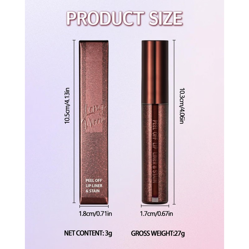 - Peel Off 2-in-1 Lip Liner and Lip Gloss - This lip gloss uses peel-off, serving as both a lip liner and a lip gloss. When applying lip makeup, you can first use it to outline a precise lip line, accurately defining your ideal lip shape with clear, smooth lines to effortlessly define your lip contour. Then, use the same product to fill in the lip color, which applies evenly for a more vibrant and three-dimensional lip look.