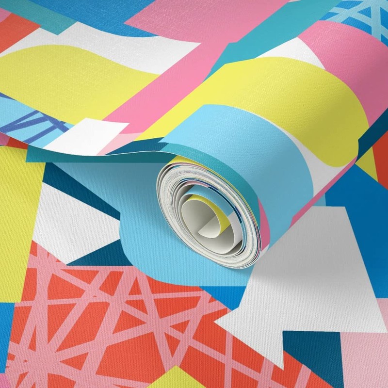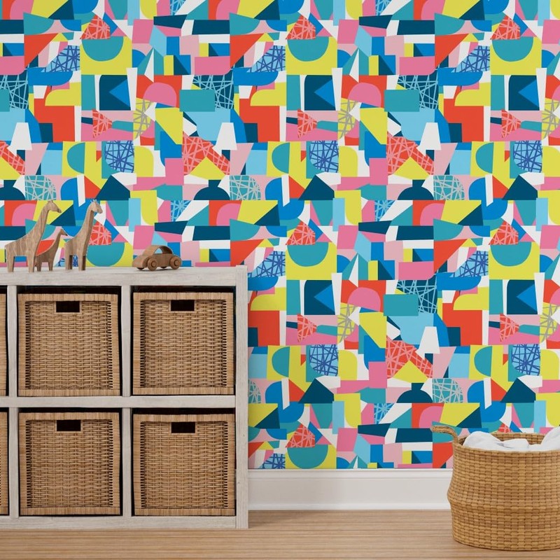 Peel & Stick Wallpaper 12ft x 2ft - Geometric Colorful Abstract Shapes Triangles Lines Play Room Decor Children Cartwheel Rainbow Geo Custom Removable Wallpaper by Spoonflower