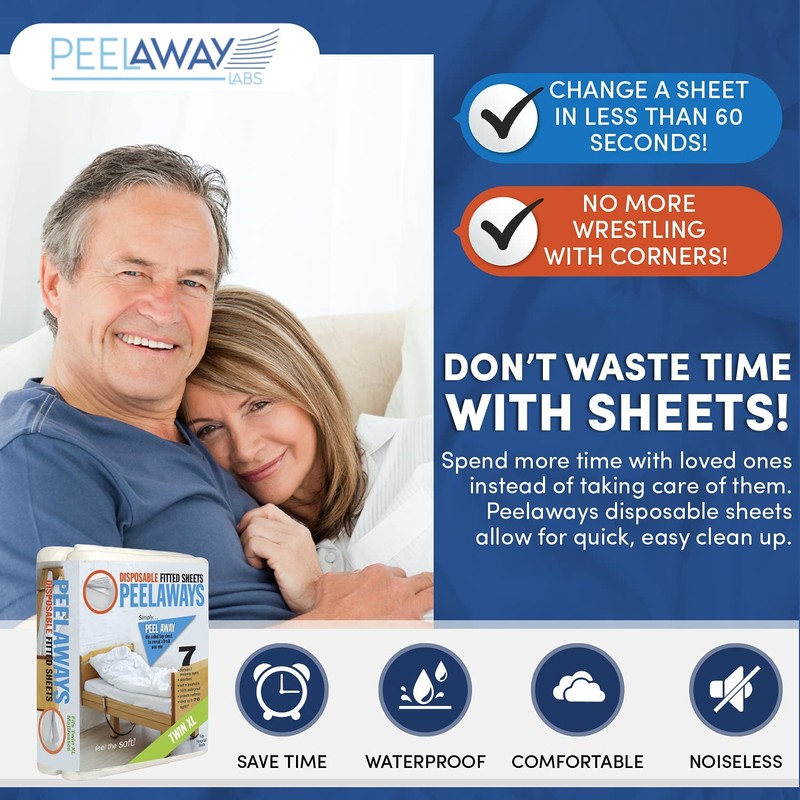 PEELAWAYS Disposable Fitted Bed Sheets Mattress Pad Protector – 100% Waterproof Designed Especially for Incontinence – Luxuriously Soft – Change in Under 60 Seconds (Full/Double - 5 Layer) by PEELAWAYS Store