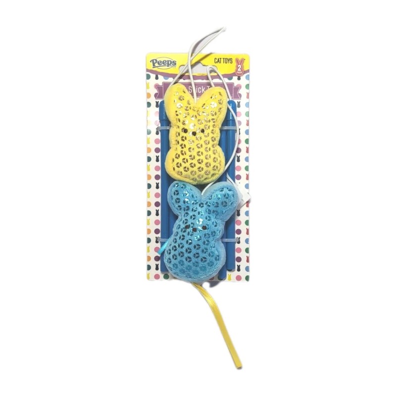 PEEPS Cat Stick Toy Rattling Bunny Wand Blue/Yellow 2-pack Dan Dee