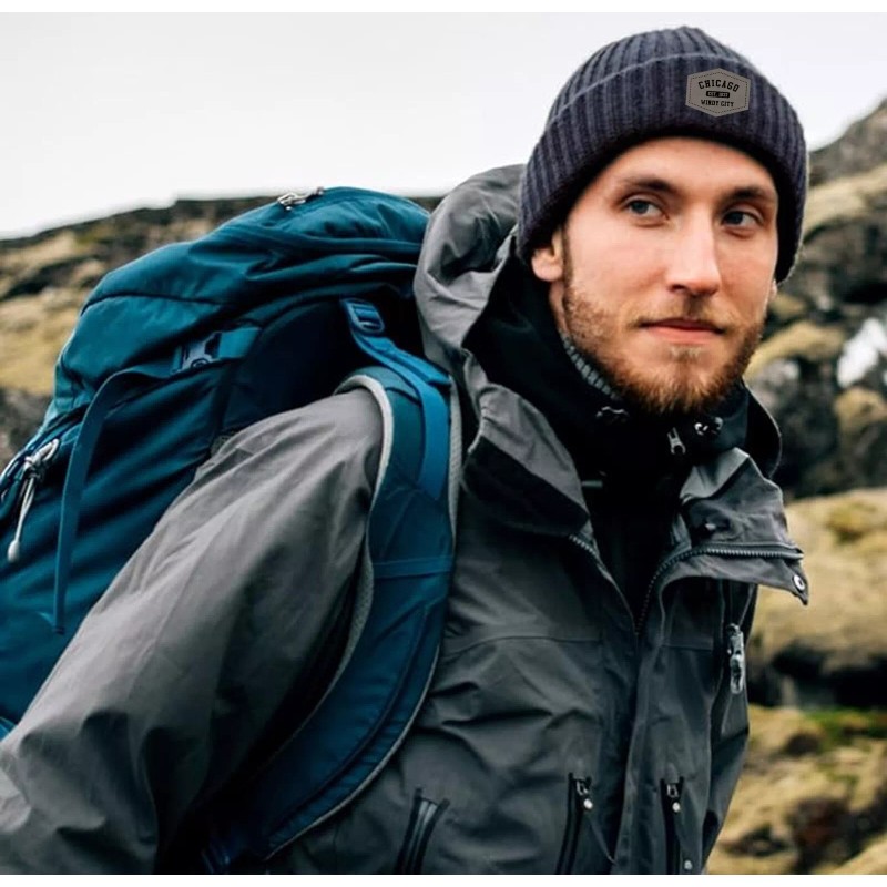 Chicago Windy City Est. 1837 Ribbed Beanie Hat Grey Leatherette Patch Navy