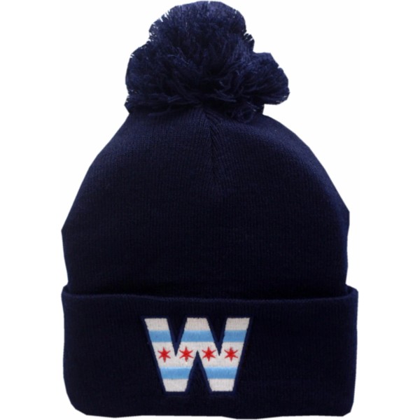 Peerless W Chicago Flag Cuffed Pom Knit Hat 12834