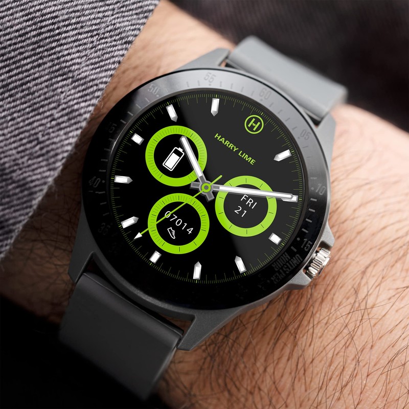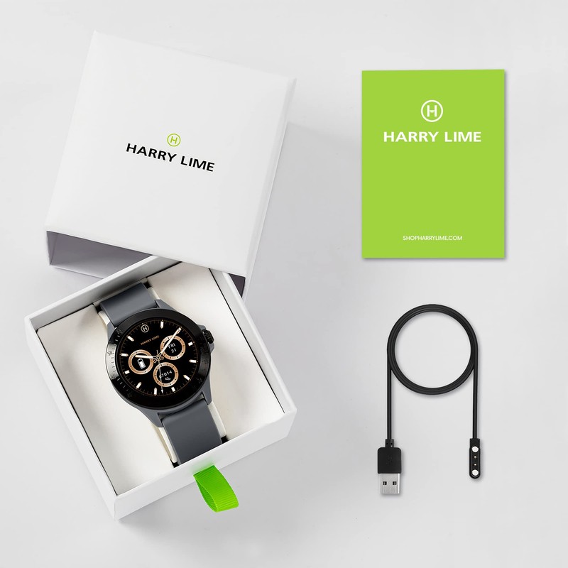 - Camera Control, Alarms, Hydration alerts, Includes Harry Lime app, Compatible with iOS & Android, 4 Days Battery Life.