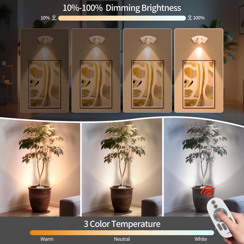 - 【Remote + Timer Function】 Picture lights & mini accent spotlights comes with remote and supports 0.5h and 1h auto-off timers. No need to walk over or worry about forgetting to turn it off. Uplights indoor saves energy and extends battery life.