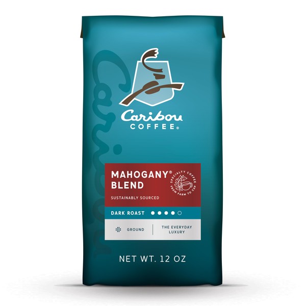 Caribou Coffee, Mahogany Dark Roast, 12 oz. Bag, Dark Roast Blend of El Salvador, Sumatra, & Guatemala Coffee Beans, Earthy, Dark, & Bold, with A Raw Sugar Finish, Arabica Coffee; Sustainable Sourcing