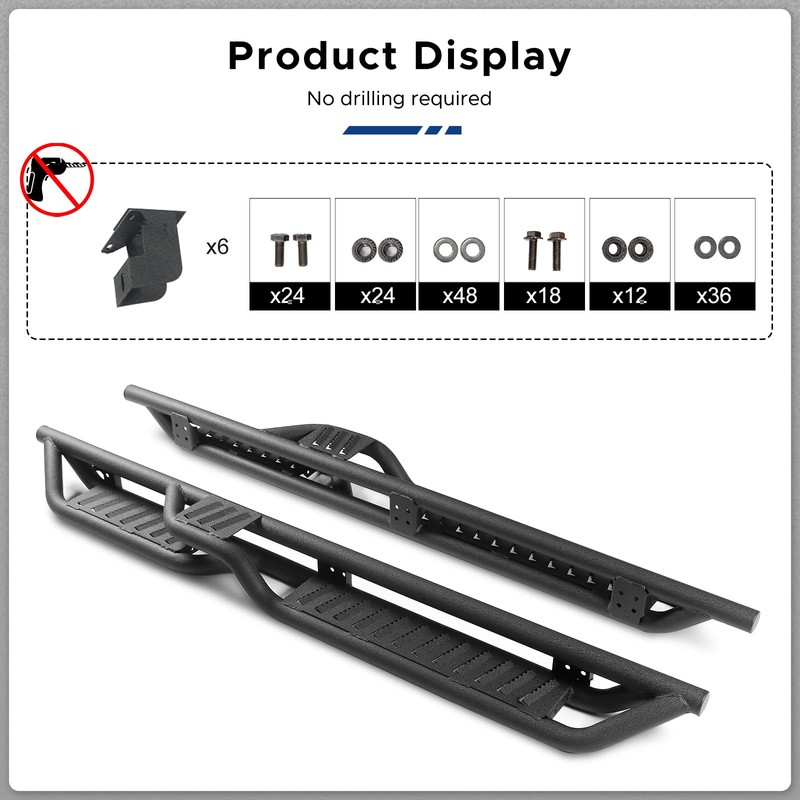 - DOUBLE LADDER DESIGN- Peforway running borads for JK 4 Door not only add the aesthetics of the running board but also increases the stepping height which is more practical.