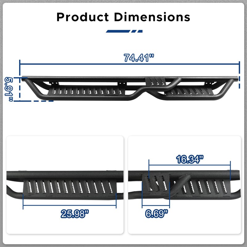 - CORROSION RESISTANCE- Textured black powder coat prevents corrosion. Non-skid patterns provides extra traction for stepping into the vehicle. Safe even in mud, snow and wet weather.
