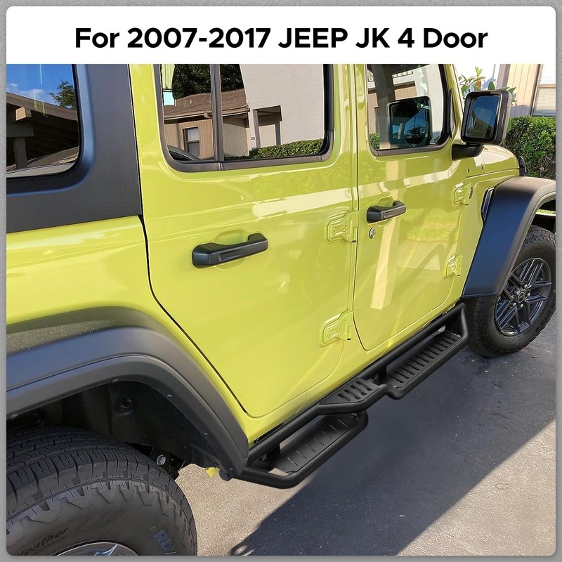 - FITMENT- The running boards are specifically engineered for Jeep Wrangler JK 4 Doors 2007-2018. Please confirm the Make, Model, Year and cab size of your vehicle before ordering.