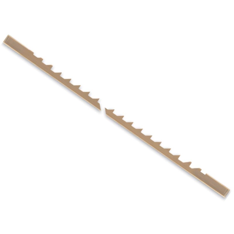 - Skip blades perform well with wood, plastic, bone, Corian, and most fibrous materials. The blades provide good chip removal, will accept a fast feed rate, and will give a smooth finish. .007" thick, .026" wide, plain end, 28 teeth per inch. .