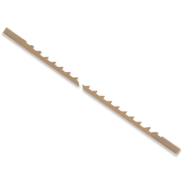 - Thickness of work range from 1/16" to 2-1/2". Skip blades perform well with wood, plastic, bone, Corian, and most fibrous materials. The blades provide good chip removal, will accept a fast feed rate, and will give a smooth finish. .007" thick, .026" wide, plain end, 28 teeth per inch. .