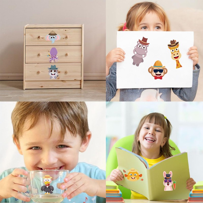 - 【llenos de diversión】A las diferentes expresiones con la cara del animal,deja que tus hijos disfruten de la felicidad mientras crean su propia imaginación para hacer una cara.Cada paquete de pegatinas tiene diferentes expresiones faciales y accesorios como ojos, bocas,corbatas, sombreros e incluso gafas de sol para combinar cualquier cara tonta o linda que les guste a tus hijos.Desarrolla la creatividad y la habilidad práctica de tus hijos.