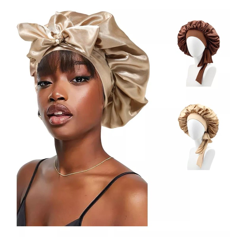 3 De gran tamaño: Nuestro Sombrero de Dormir Extra Grande es lo suficientemente grande como para cubrir completamente todo tipo de cabello, incluyendo giros, trenzas, rizos, cabello natural, tejidos, ondas, cabello largo, cabello seco o rizado, permanentes, rizos, afros, moños o cabello corto. Este gorro de noche de seda mantendrá tu pelo en su sitio toda la noche y no se caerá.
