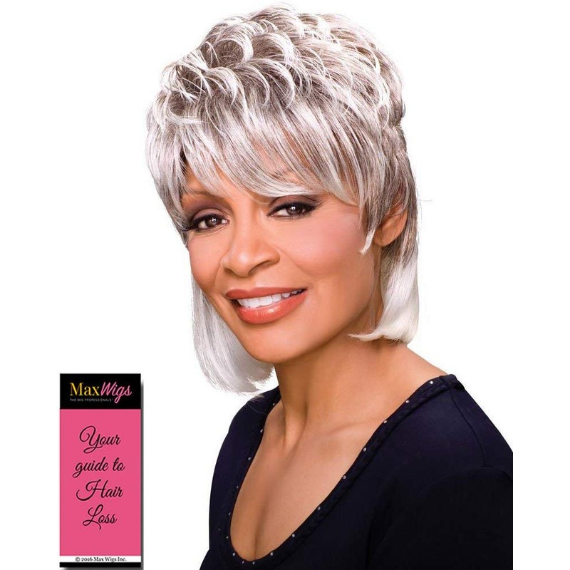 • Peggy Wig Color 3T34 - Foxy Silver Wigs 10" Mid Length Chunk Layers Tapered Bangs Synthetic African American Lightweight Bundle Hairloss Booklet, Comb