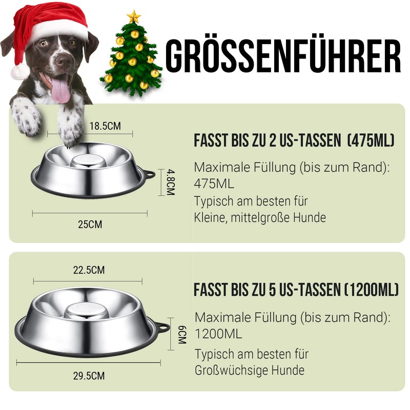 - Passende Größe: Wir haben zwei Größe für verschiedene Hunde. Für kleine oder mittel große Hunde: 18,5*4,8cm, 475ml Für großmatige Hunde: 22,5*6cm, 1200ml