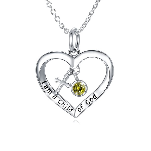 PEIMKO Baptism Gifts for Women August Peridot Birthstone Cross Heart Pendant Necklace with Simulated Birthstone 925 Sterling Silver First Communion Gifts 16 Inch