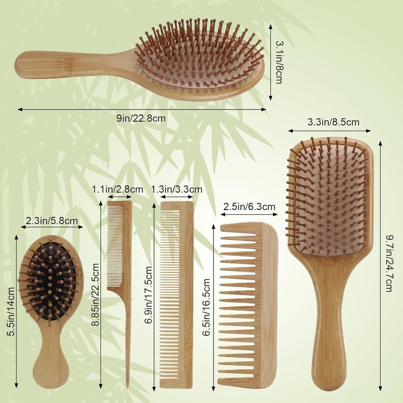 - 【Conjunto de Cepillo Y Peine de Cepillo Bambu】Este peine de bambu para el cabello de pelo viene con 1 peine de dientes anchos 1 peine de dientes finos,1 peine de bolsa de aire comprimido,1 peinado de punta y cola,1 peine de bolsa de aire circular,1 peine de bolsa cuadrad, no solo cumple con el cuidado diario del cabello, sino también con masaje. y estimula el cuero cabelludo de forma segura, aumentando la circulación sanguínea, lo cual es bueno para el crecimiento del cabello.