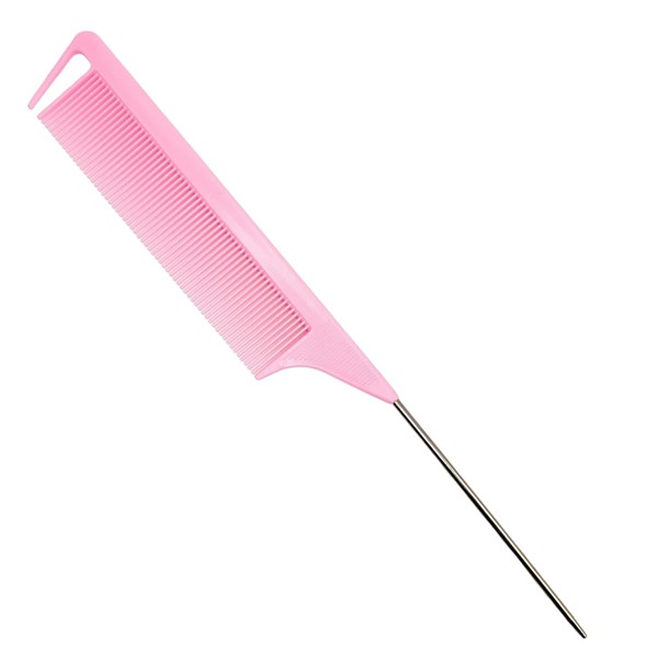 Peine Profesional Cola De Metal, Resistente Calor, Varios Colores (ROSA)