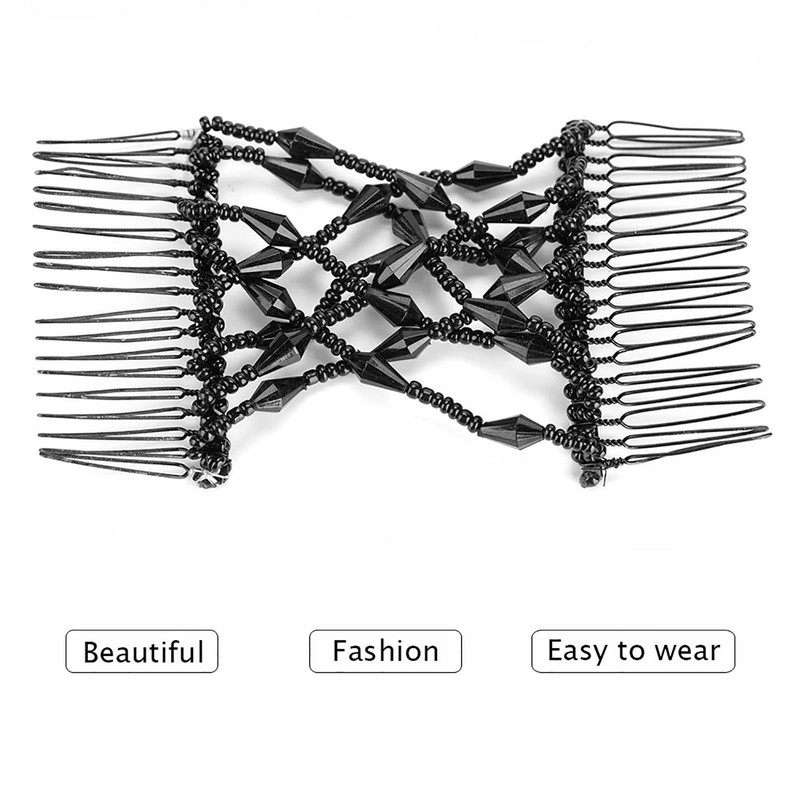 Peinetas de pelo Pinzas, peine para cabello mujer Mujeres Chica Magic Easy Hair Beads Slide Clip de peine elástico Horquilla elástica, toboganes dobles Peinetas para mujeres Damas Niñas(NEGRO)