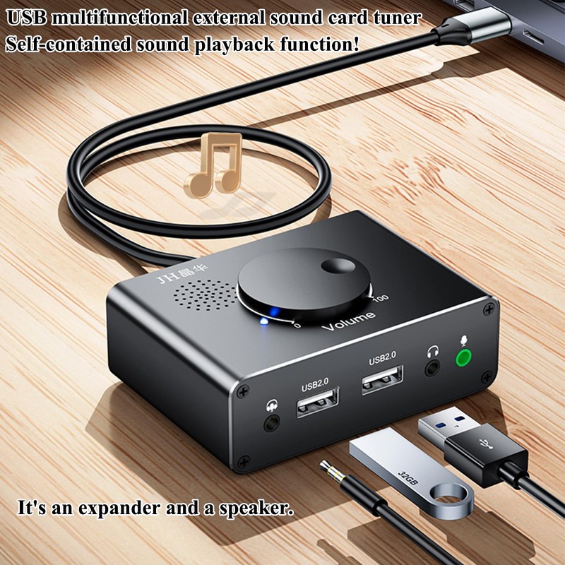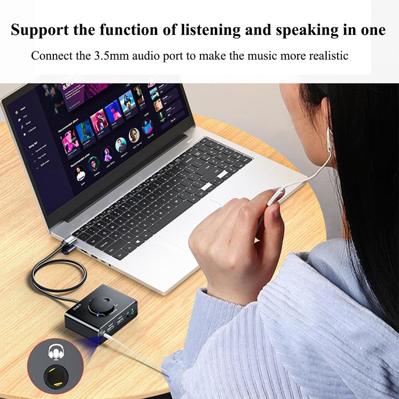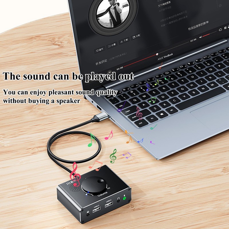 - 【USB External Sound Card】 Comes with sound playback function, no need to buy speakers can also sound pleasant sound quality. The volume of its output audio can be adjusted through the volume wheel on the control panel