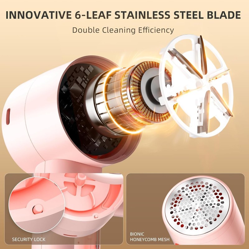 - Innovative Blades -- Upgraded 6 Leaf Blades, razor-sharp, double cleaning efficiency compared to the 3-blade cutter head, with 3 speeds to cater to different fabric types and pilling intensities without damaging your beloved textiles. Tips: It is recommended to use it by laying the garment flat on a hard surface