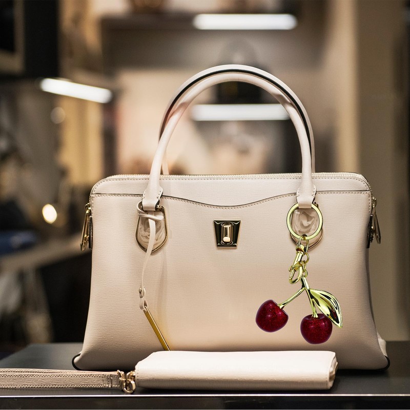 Pejnl Cherry Bag Charm Cute Cherry Accessories Clip for Handbags Purse Charms Keychain Christmas Valentine Bag Gifts