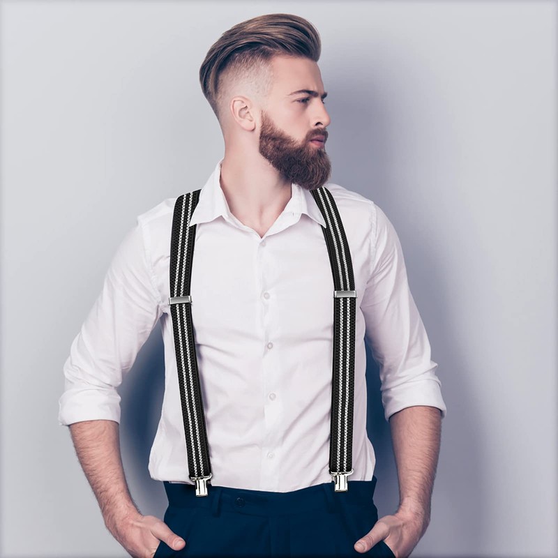 - ADJUSTABLE SUSPENDERS The braces for men is 125cm long and 4cm wide. The adjustable metal buckle can be freely adjusted according to your needs.