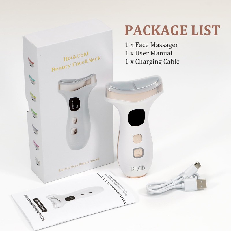 - 【7 in 1 Skin Care】PELCAS face massager features 7 distinct modes, each combining a specific colour light (Red, Cyan, Yellow, Green, Blue, Purple, White) with targeted functions like hot compress, cold compress, vibration, or EMS microcurrent. PELCAS versatile face massager helps address various skin concerns and can be adjusted to your comfort and care needs.