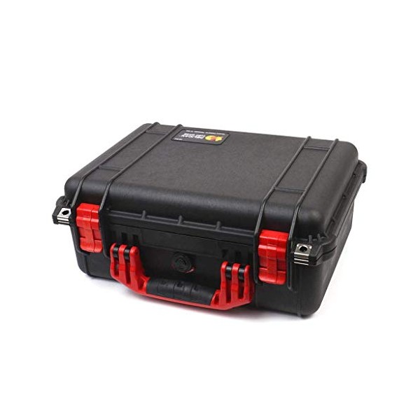 Pelican Color Case Black Pelican 1450 case with red Handle & latches. Comes with Foam.