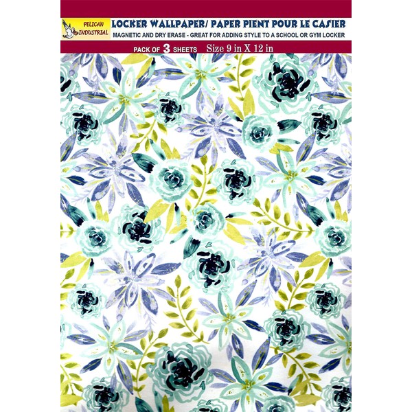 PELICAN INDUSTRIAL Magnetic Locker Wallpaper (Full Sheet Magnetic) - Flowers - Pack of 3 Sheets - v6c