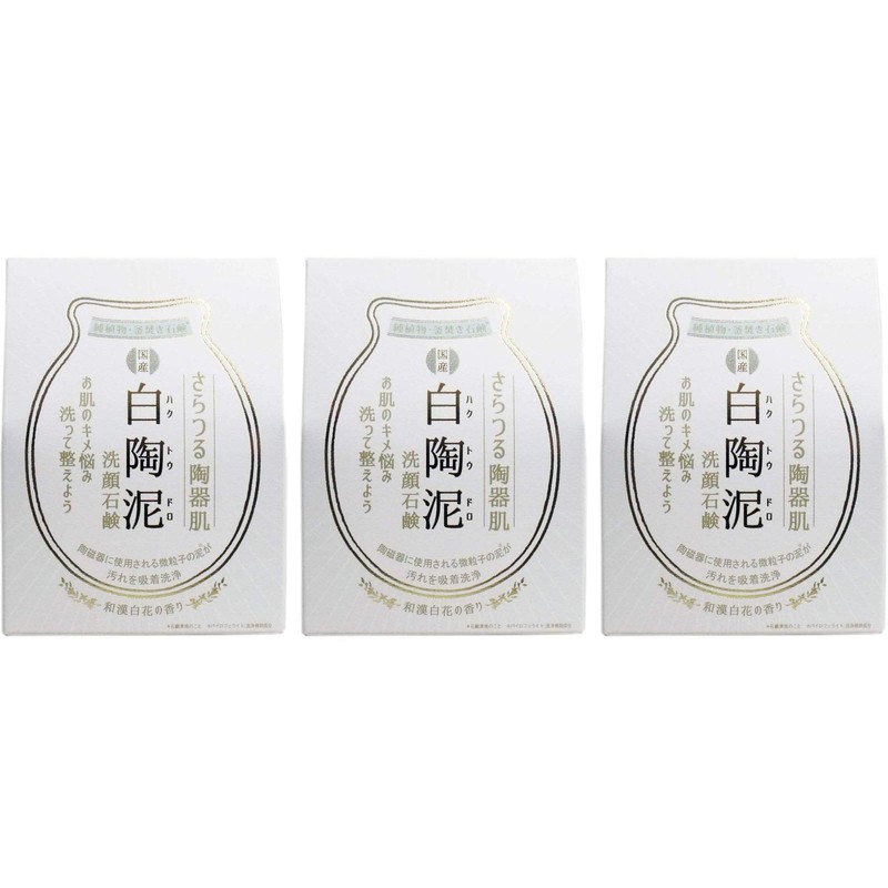 Pelican Soap, White Ceramic Mud Face Wash Soap, 3.5 oz (100 g) x 3 Piece Set