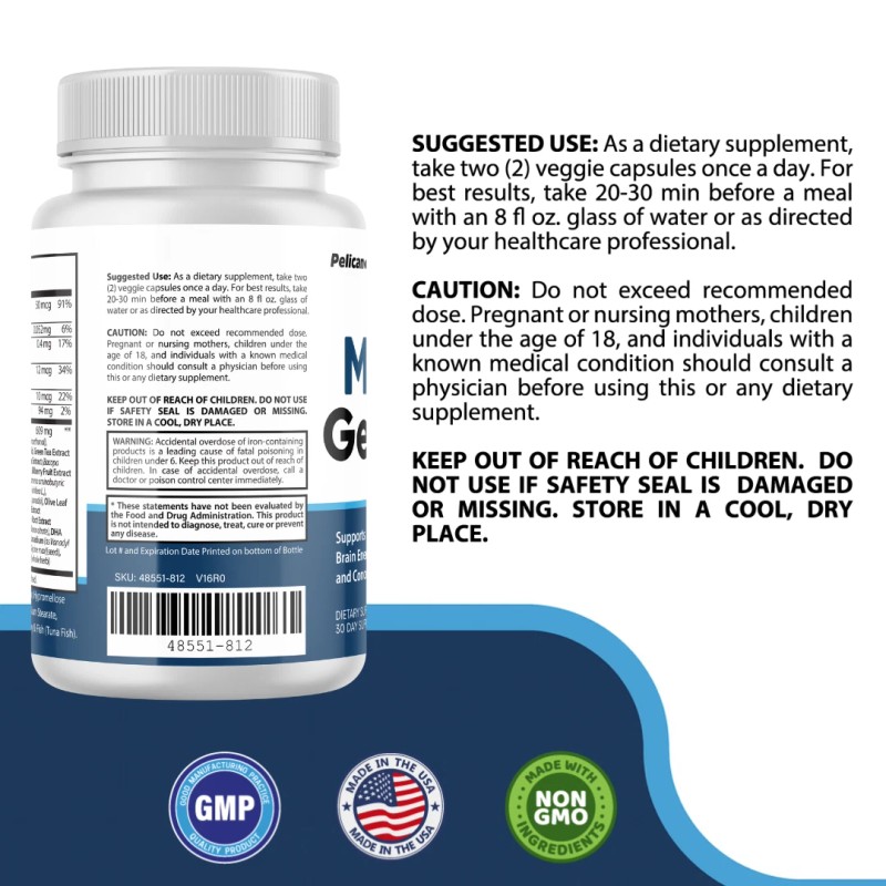 Pelican Vitamins Memo Genesis- Brain Support- 2 Bottles- 120 Capsules