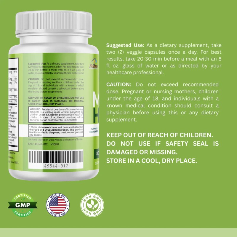 Pelican Vitamins MIND HERO- Brain Support- 12 Bottles- 720 Capsules