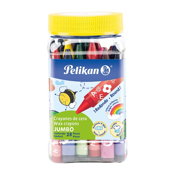 Pelikan 50700028 Crayones Jumbo Redondos Bote con 28 pzs, Multicolor