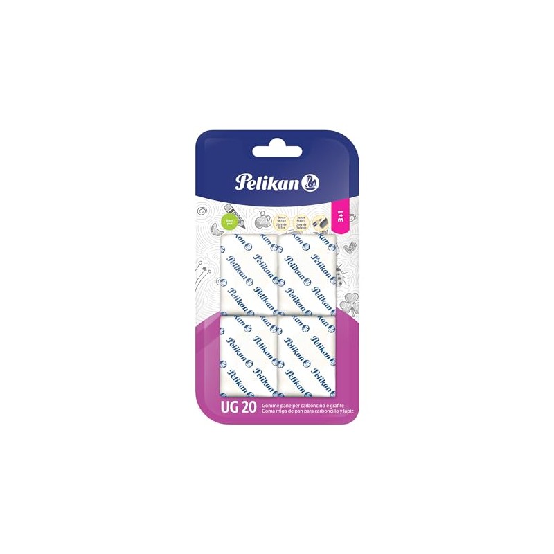 Pelikan Bread UG 20 White Eraser Suitable for Technical, Artistic and School Drawings, Charcoal and Graphite, Pack of 4