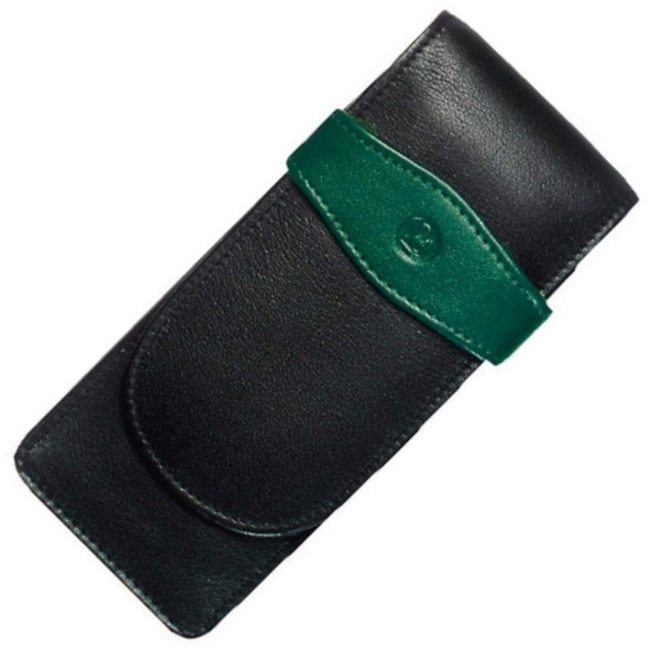 Pelikan Leather Triple Pen Case, Black/Green (924092)