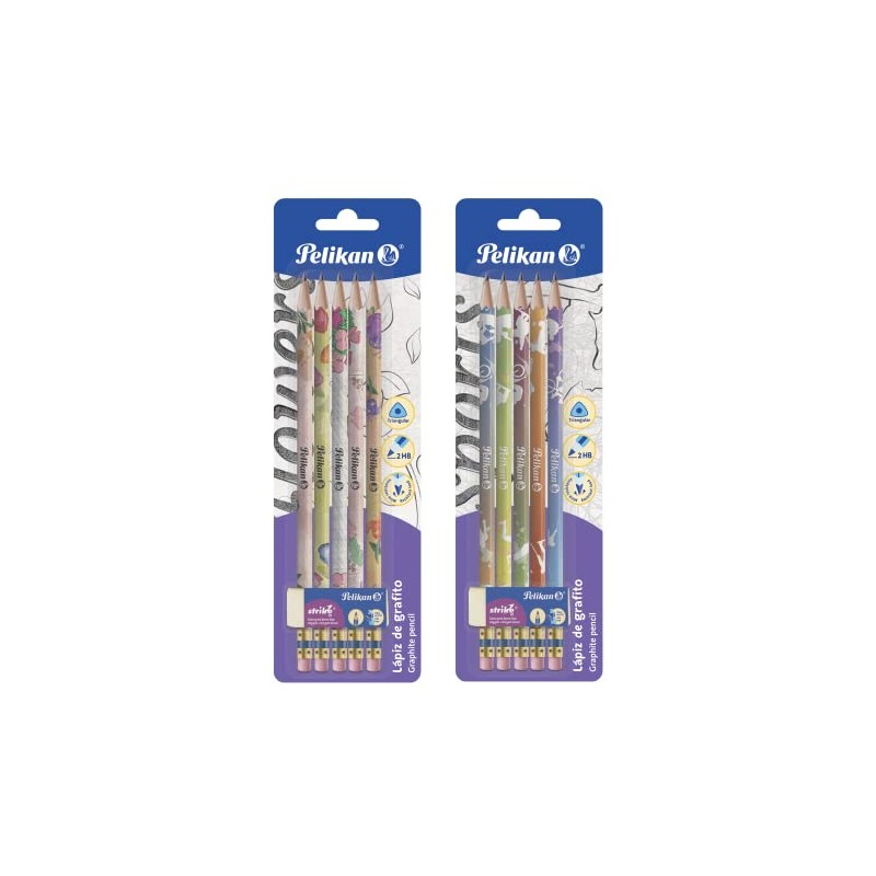 Pelikan Tarjeta de 5 Lápices de Escritura #2HB Triangular con Diseño